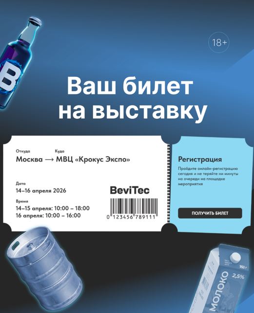 С 14 по 16 апреля 2026 года в МВЦ «Крокус Экспо» состоится BeviTec — единственная в России и СНГ специализированная выставка, охватывающая полный цикл производства напитков: от оборудования и ингредиентов до упаковки и реализации.