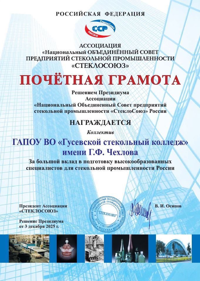 Номинация: Лучшее среднее специальное учебное заведение по подготовке кадров для стекольной промышленности
